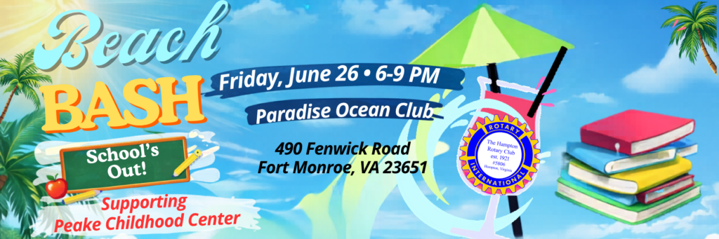 Friends with one of our Hampton Rotary Club Members? Reach out to them for your Beach Bash Tickets and save on online ticket fees!!! Cash and check only! Checks need to be made out to Hampton Rotary Club.